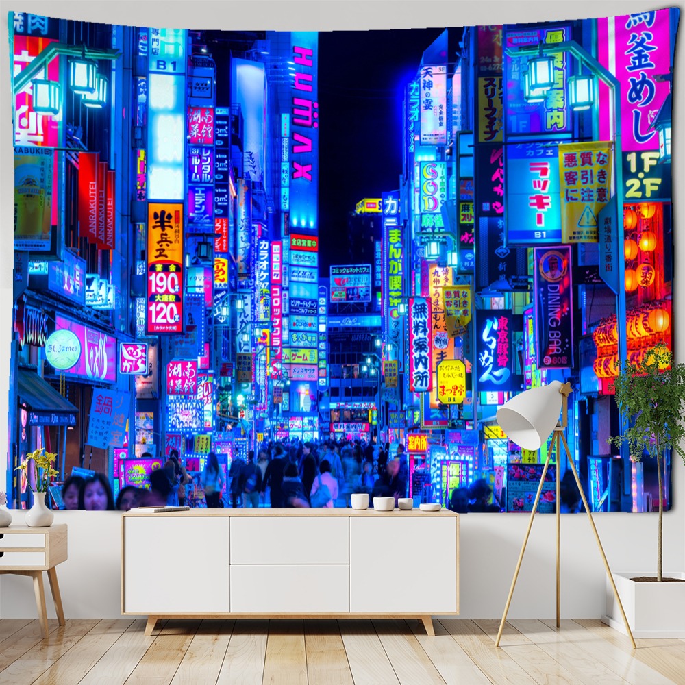 Tokyo Street Tapestry Wall Hanging Tapis Cloth has exquisite colors and clean finishing, making it a fantastic focal point for any room. These high-quality tapestries are intended to add a fashionable touch to your living room, hallway, or bedroom.