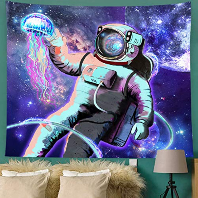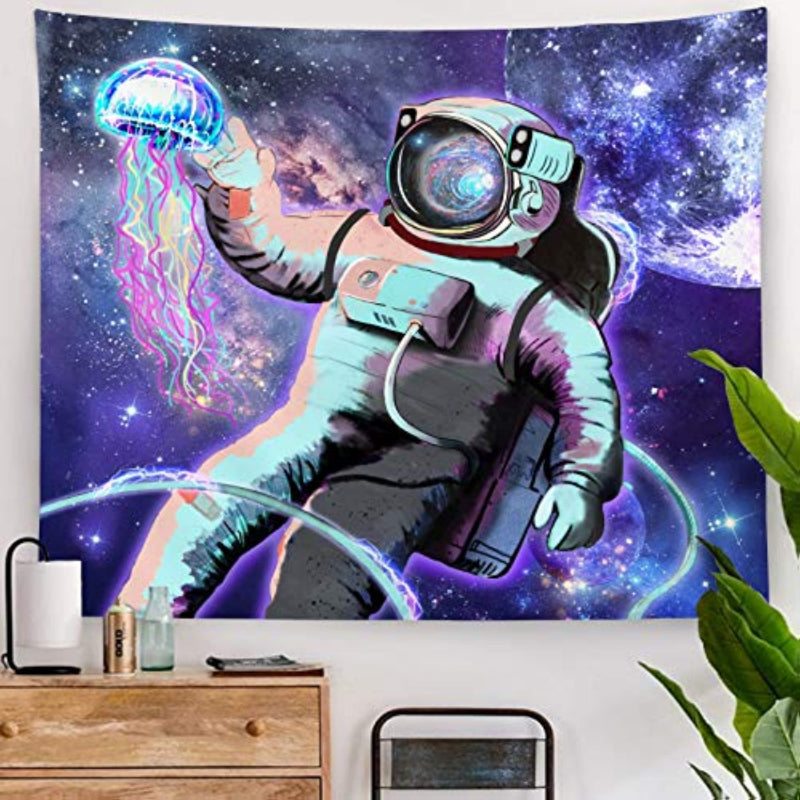 The Trippy Astronaut Tapestry Space Tapestry is a beautiful and unique wall hanging that is perfect for decorating your bedroom. With its vibrant colors and intricate design featuring planets, galaxies, and an astronaut floating in space, this tapestry adds a touch of otherworldly beauty to your room. Whether you're looking to bring a touch of cosmic wonder to your decor or just want a statement piece that's out of this world, this tapestry is a perfect choice.
