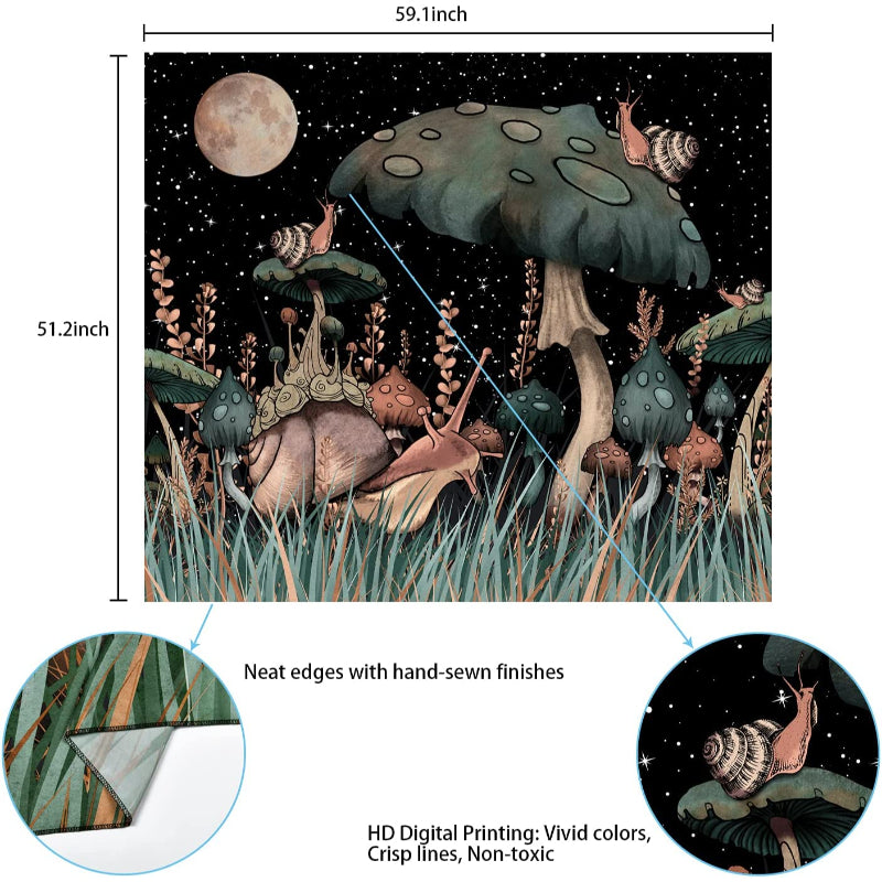 This Trippy Mushroom tapestry will give your home an elegant vibe. Whether you display these surreal tapestries in your house, office, or another location, they are well suited for any setting. This tapestry's star-moon theme makes it more intriguing and gives your room a mystical feel. These are composed of high-quality polyester fabric, and their boho design increases their allure and demand.