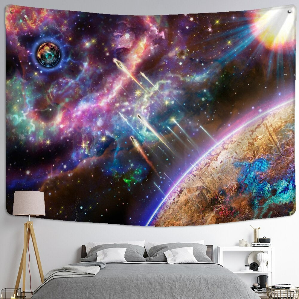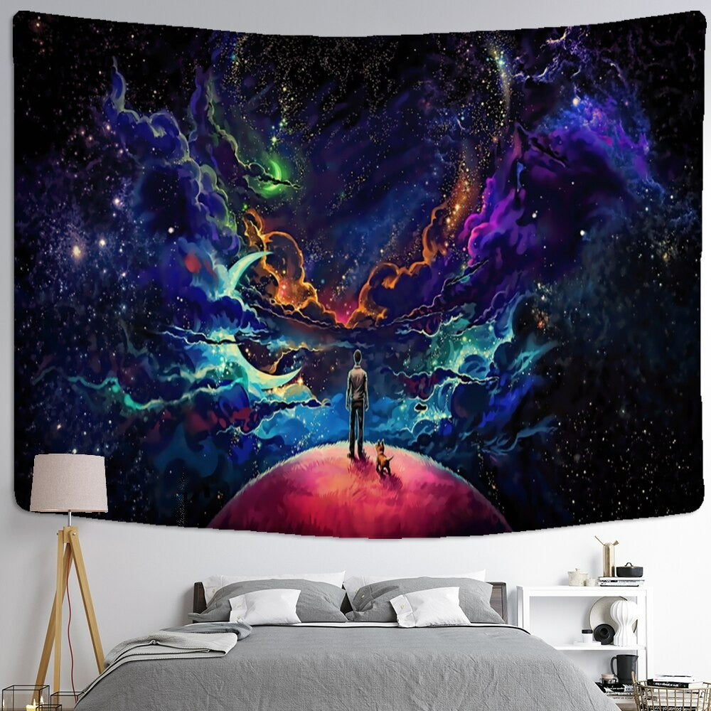 Universe Starry Sky Tapestry Wall Hanging Tapis Cloth has exquisite colors and a clean finish, making it a fantastic focal point for any room. These high-quality tapestries are intended to add a fashionable touch to your living room, hallway, or bedroom.