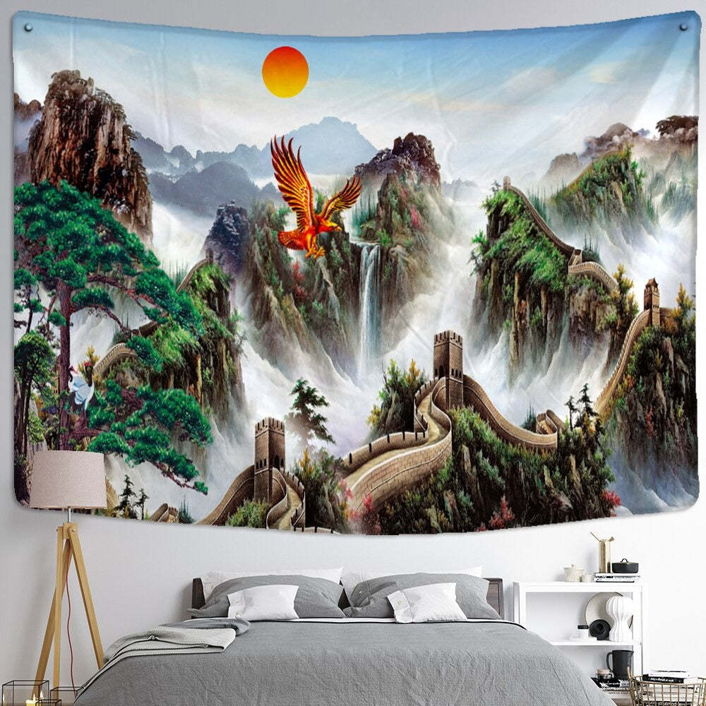 Waterfall Mural Tapestry Wall Hanging Tapis Cloth has exquisite colors and clean finishing, making it a fantastic focal point for any room. These high-quality tapestries are intended to add a fashionable touch to your living room, hallway, or bedroom.
