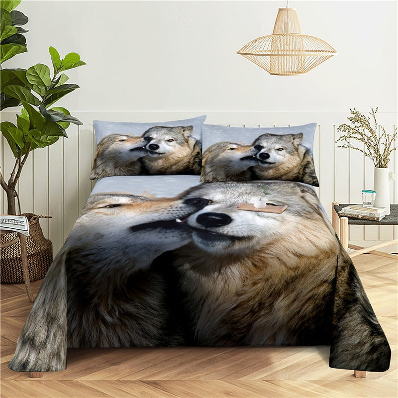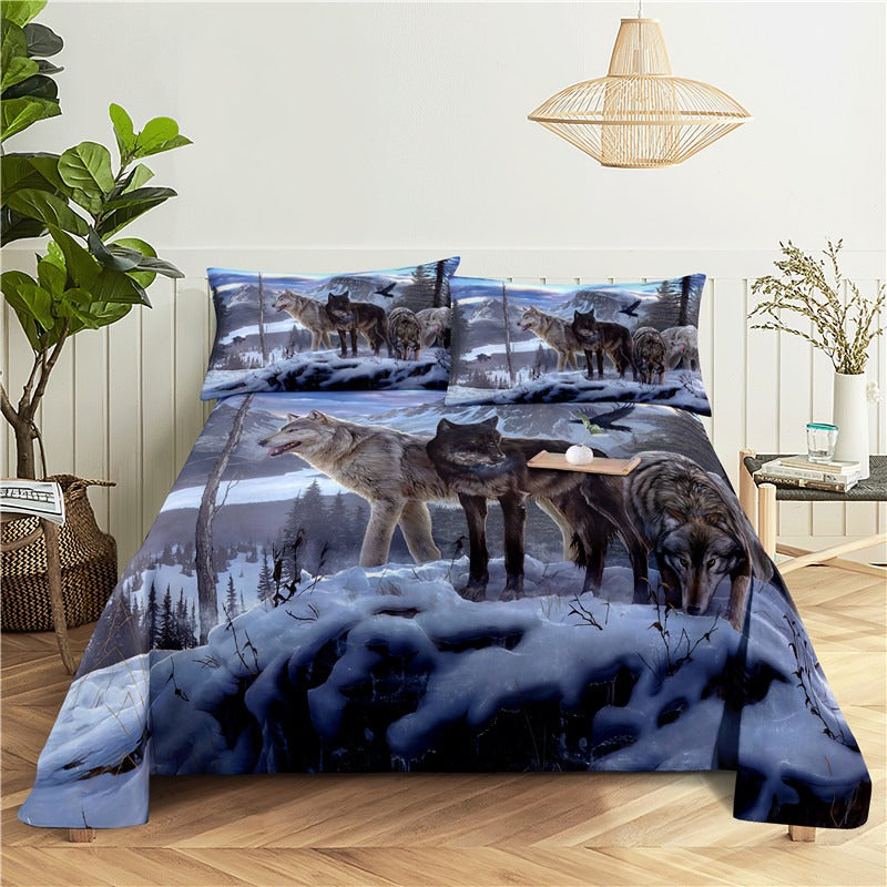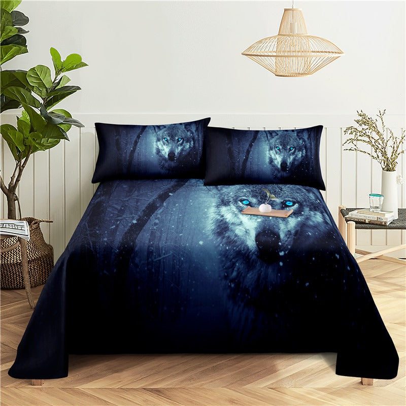 Wolf Print Bed Flat Bedding Set is made of high-quality polyester material making it soft comfortable and durable. The sheets and pillowcases have a smooth and silky feel adding a touch of luxury to your sleep experience. The polyester material is also easy to care for and maintain as it is machine washable and quick-drying. Whether you are a fan of wolves or just love the outdoors this bedding set is the perfect addition to any bedroom.