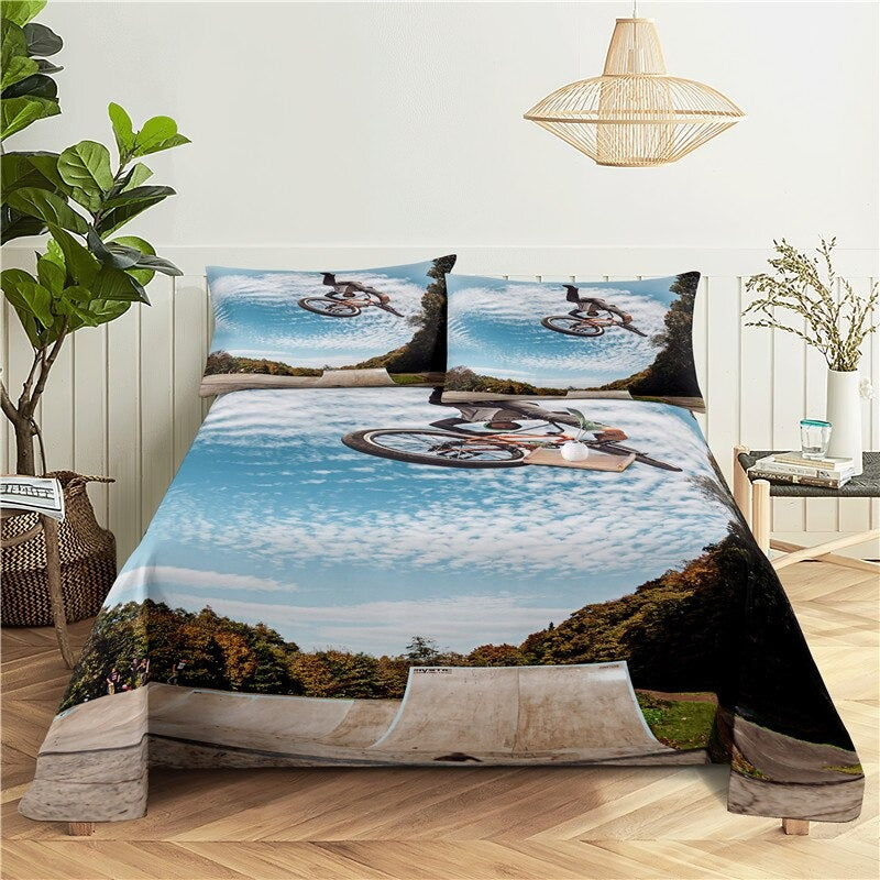 The X-Games Print Bedding Set is a design that features the famous game's print in a super stylish form and multicolor, making them a perfect match for a child's room. This bedding set is perfect for any gamer who wants to decorate their bedroom with the most popular game logo. This high-quality printed bedding set includes a fitted sheet and matching pillowcases, available in multiple sizes so you can choose as per your room's requirements.